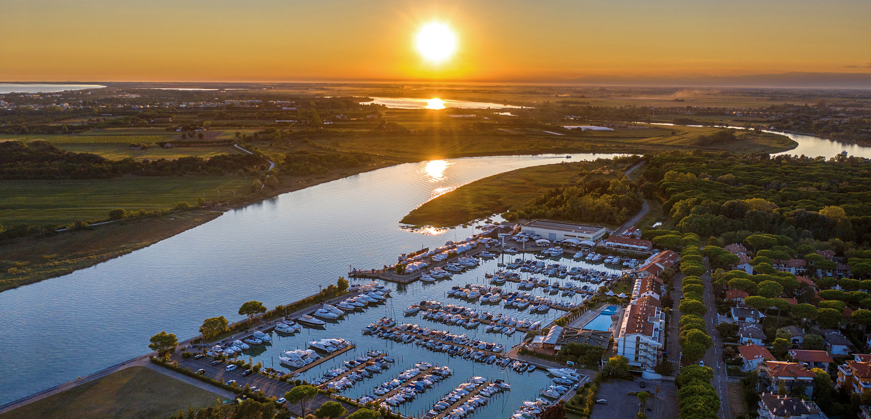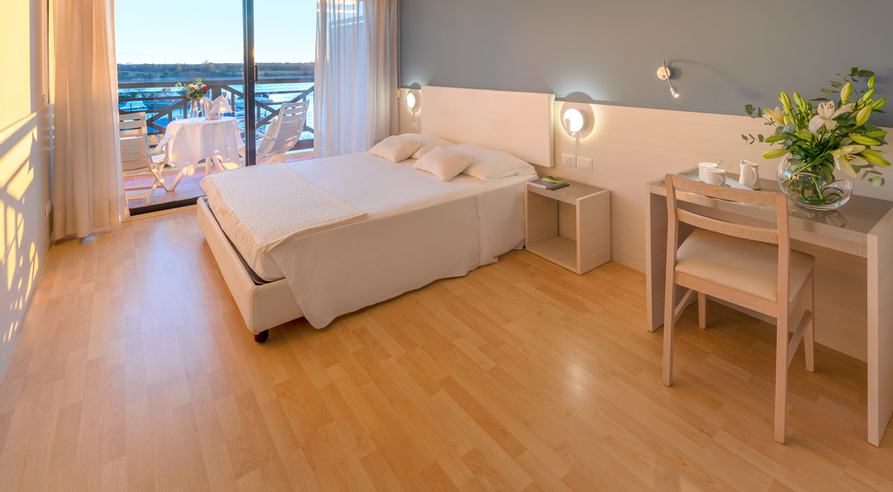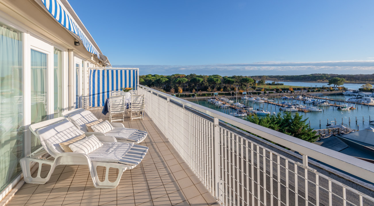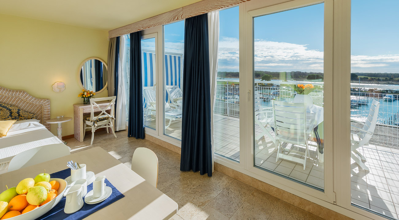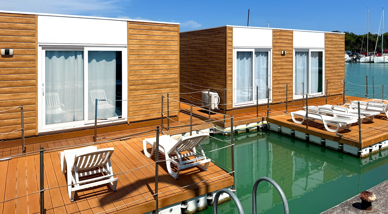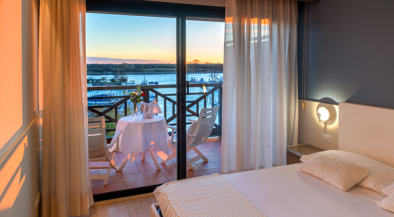 Großzügige und helle Zimmer und Suiten mit komfortabler Einrichtung, die durch ein helles und freundliches Design mit natürlichen Materialien wie Holz und Schilf besticht und durch zahlreiche Annehmlichkeiten ergänzt wird. Apartments mit direktem Blick auf den Yachthafen und die Mündung des Flusses Tagliamento. Hausboote für einen einzigartigen Aufenthalt. Gästen stehen ein großes Restaurant mit Blick auf den Anleger, ein olympisches Schwimmbecken mit angrenzendem Kinderbecken, eine Sauna und ein türkisches Bad zur Verfügung